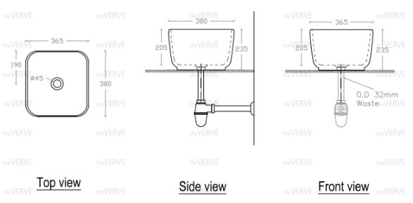 L380mm x W380mm x H235mm