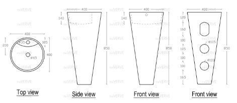 L400mm x W400mm x H850mm